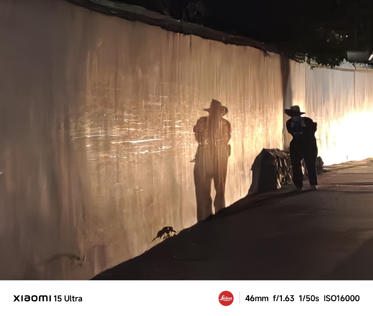 一天路过小巷,远处一辆小车开来,刚好一位老人家路过,车灯照着老人,影子投射在墙上,仿佛一位牛仔走在大漠中。